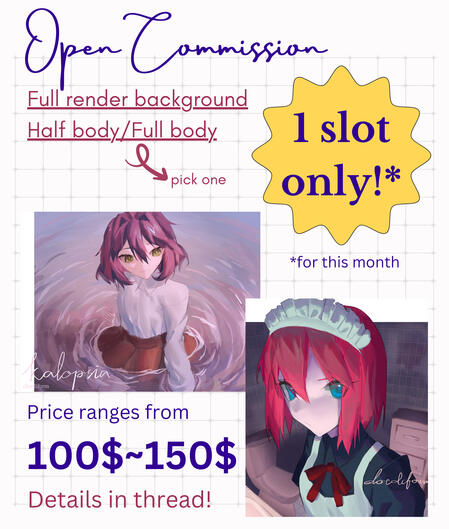 6. You do not need to credit me when using the commission result except when someone asks who the artist is